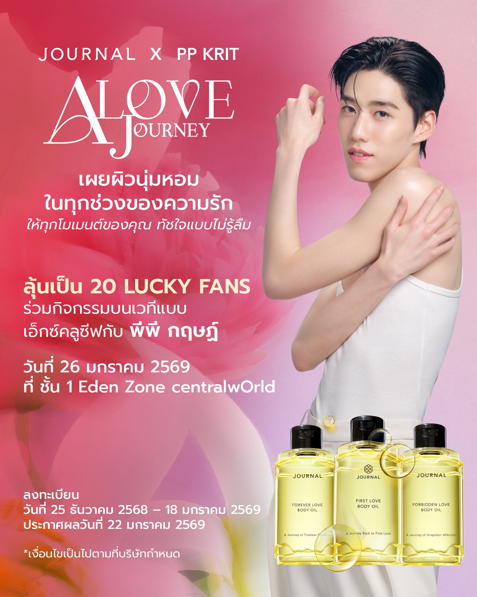 ภายในงาน ผู้โชคดีจำนวน 20 ท่าน จะได้สร้างประสบการณ์ และโมเมนต์พิเศษไปพร้อมกับ JOURNAL Body Oil และพีพี กฤษฏ์ ในวันที่ 26 มกราคม 2569 ชั้น 1 Eden Zone, centralwOrld